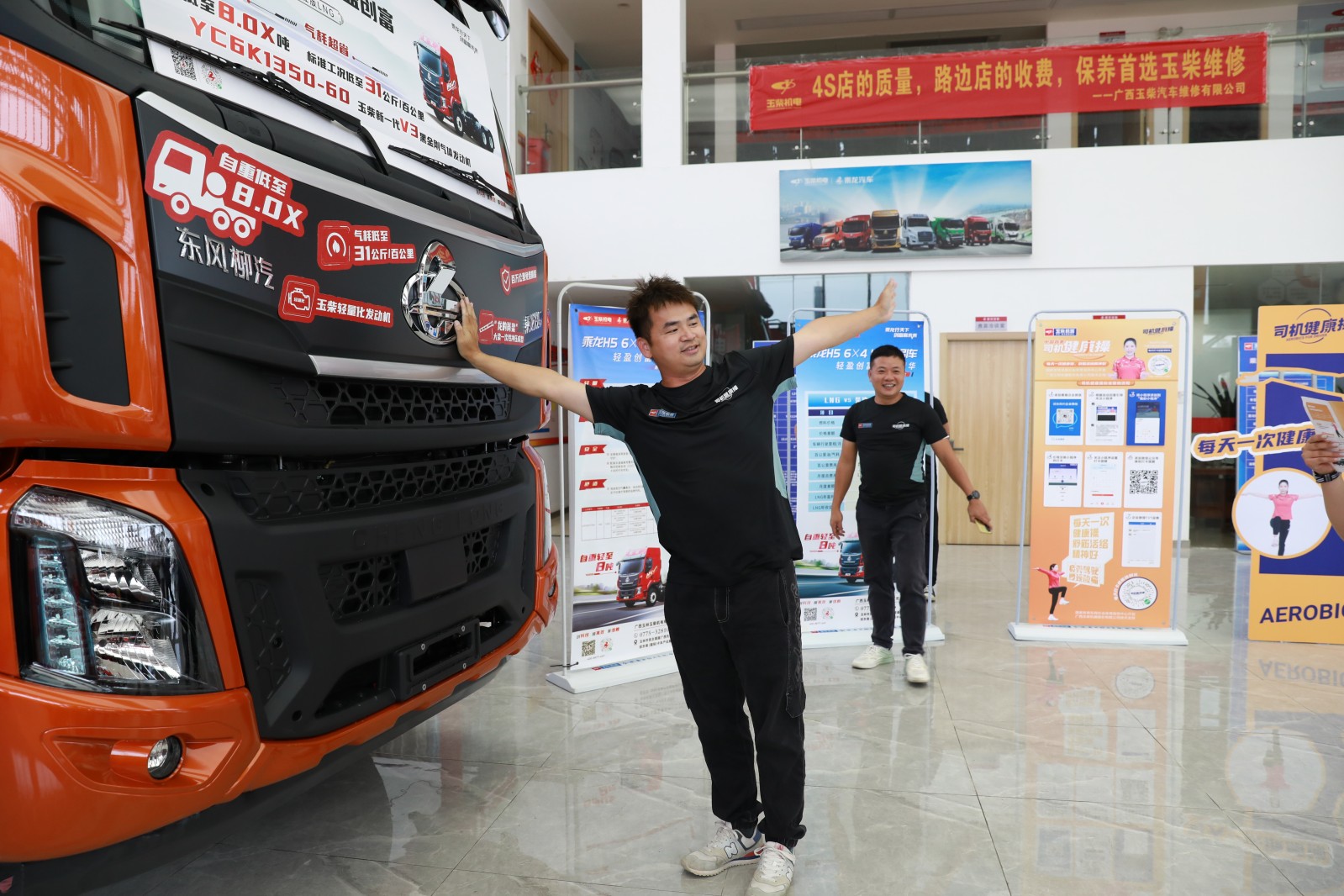 玉柴物流集團(tuán)聯(lián)合品牌公關(guān)部開展乘龍H5-500燃?xì)鉅恳囃茝V暨司機(jī)健康操推廣活動(dòng)
